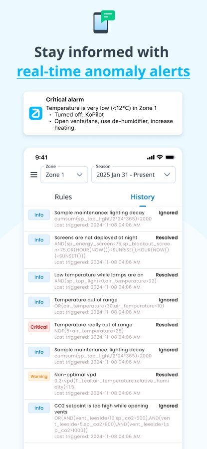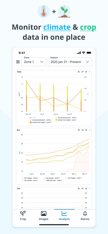 • Sync real-time climate data from supported control systems for a complete picture of your growing environment.