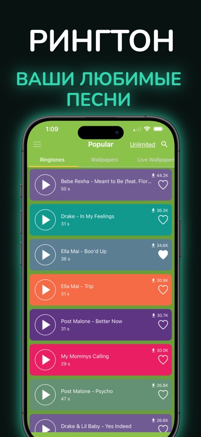 Вы ищете приложение для рингтонов и обоев с лучшими музыкальными рингтонами, обоями и хитовыми музыкальными рингтонами для вашего iPhone, iTunes и/или iPad? Для смены рингтона не нужен ПК или Mac. Вы должны попробовать Cool Ringtones, Music and Songs — дайте вашему iPhone необходимое преимущество. Бесплатные рингтоны при просмотре видеорекламы или ежемесячной или ежегодной подписке на неограниченное количество рингтонов без рекламы.
