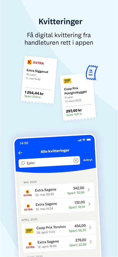 • Få digital kvittering fra handleturen rett i appen