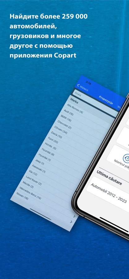 Ищите среди более чем 175 тыс. автомобилей, грузовиков, внедорожников, мотоциклов, лодок, классических моделей автомобилей, экзотических транспортных средств и многого другого с помощью мобильного приложения Copart. Используя мобильное приложение Copart, участники с планами «Базовый» и «Премьер» могут легко и быстро размещать ставки и выигрывать транспортные средства с любого мобильного устройства. Copart ежедневно проводит тысячи аукционов по продаже подержанных автомобилей, на которых можно купить как битые авто, так и авто с отсутствием отметок о восстановлении.