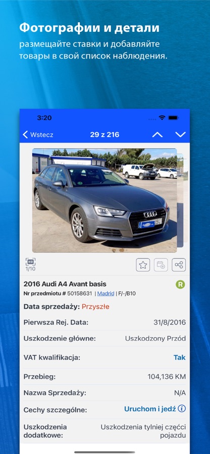 Приложение Copart позволяет участникам с планами «Базовый» и «Премьер» участвовать в проводимых страховыми компаниями автомобильных аукционах, на которых представлены подержанные автомобили, транспортные средства, изъятые за неуплату, и многое другое. И самое главное, участники Copart с планами «Базовый» и «Премьер» могут получить доступ к этим аукционам подержанных автомобилей из любой точки земного шара, где есть подключение к Интернету. Участники смогут найти такие автомобили, как «битые авто на продажу», по типу, году выпуска, марке, модели и местоположению, а также получать информацию о транспортных средствах, внесенных в список отслеживаемых позиций. Кроме того, участники Copart с планами «Базовый» и «Премьер» могут использовать приложение, чтобы получать уведомления о результатах своих автомобильных аукционов.