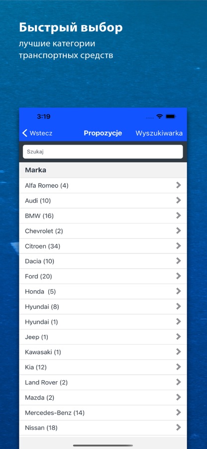 • Быстрый поиск в глобальном каталоге транспортных средств по марке, модели, году, местоположению и другим параметрам