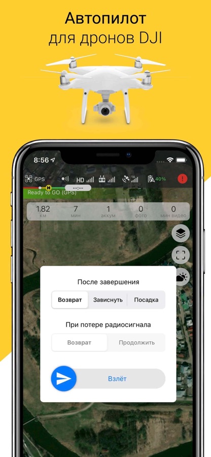 — Возможность задавать курс левым джойстиком в то время, как дрон летит по маршруту