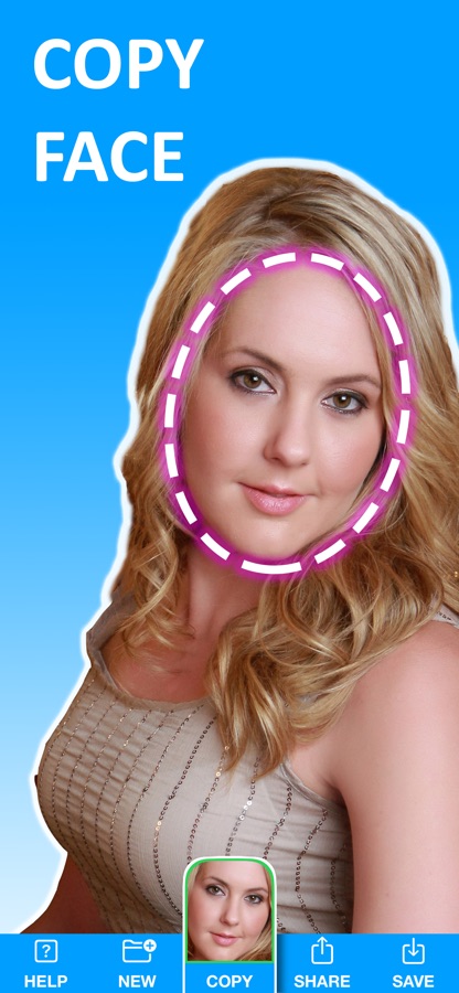 Copy Replace Face allows you to copy a face from any photo onto any other photo. Simple.