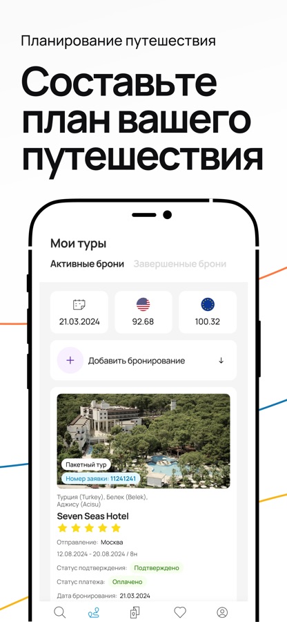отелю, отслеживать время трансферов, делиться найденными турами с друзьями и близкими и