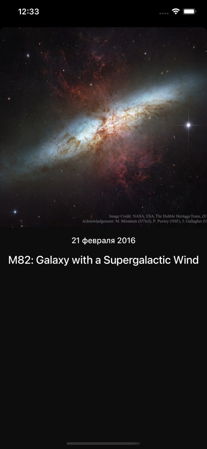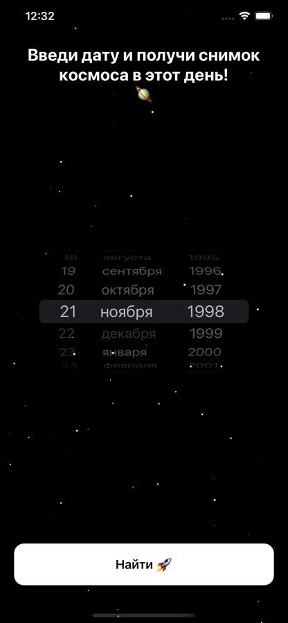 Приложение позволяет увидеть снимки звёздного неба(и не только) по выбранной дате, начиная с 1995 года.