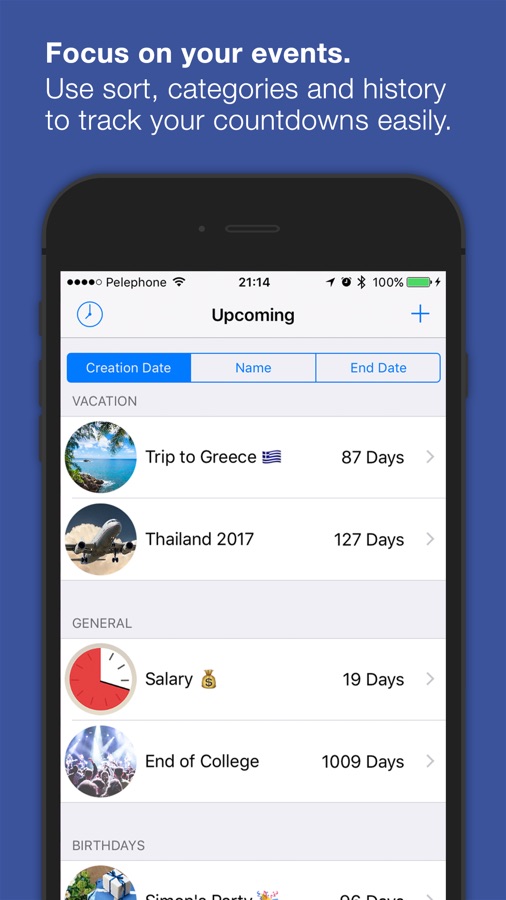 Countdown 24/7 — это лучший способ управлять обратным отсчетом и напоминаниями с удивительно легким в использовании интерфейсом!