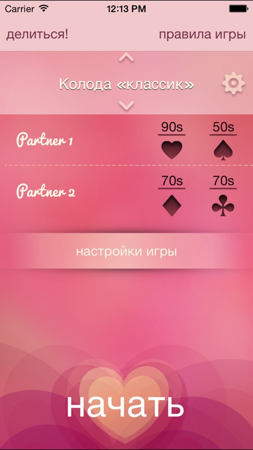 Правила игры очень просты. С первово взгляда обычная колода карт состоит из карт с возбуждающими и более смелыми задачами. После того, как партнер изберет карту и прочитает задачу, его партнер/партнерша должен/должна выполнить избранную задачу за данный интервал времени.