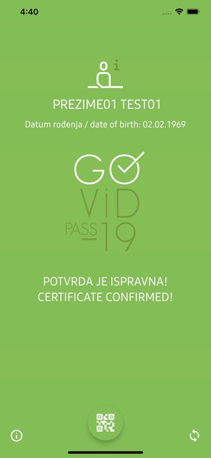 Mobilna aplikacija skeniranjem kôda omogućuje provjeru nacionalnog digitalnog potpisa podataka u QR kôdu, provjeru valjanosti potvrde prema poslovnim pravilima primjene u RH, te ispisivanje poruka o uspješnoj ili neuspješnoj provjeri digitalnog potpisa i valjanosti potvrde.