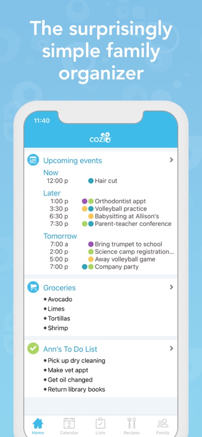 Cozi Family Organizer is the surprisingly simple way to manage everyday family life. With a shared calendar, reminders, grocery list and more, Cozi is a 3-time Mom’s Choice Award Winner and The TODAY Show “must-have app” for a better life.