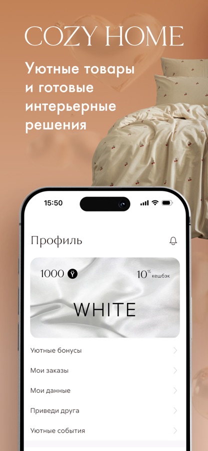 Мобильное приложение COZY HOME – это удобный способ оформления заказов в режиме 24/7, а также возможность получать уведомления об акциях и специальных предложениях.