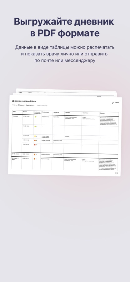 Делитесь с врачом чёткими и понятными отчётами о самых частых симптомах и триггерах, провоцирующих боль.