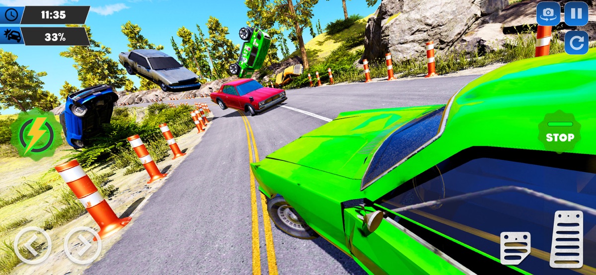 Вы поклонник автомобильных аварий? Тогда эта игра с автокатастрофами для вас. Ускорьте режим аварии в автомобильной игре, избегайте аварий любой ценой, а если машина врежется в другую автомобильную аварию или препятствие, откиньтесь на спинку кресла и наслаждайтесь физикой аварии в этой игре по обнаружению автокатастроф.