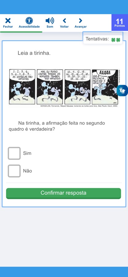 •Motivação para o estudo: o aplicativo possui recursos de games como pontuação, tentativas e feedbacks que aumentam o interesse do aluno no estudo.