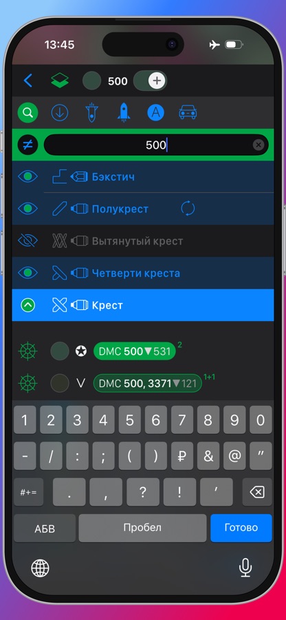 • Сортируйте нитки в списке ключа схемы, пользуйтесь поиском по номерам