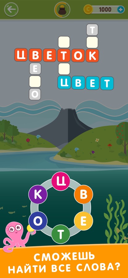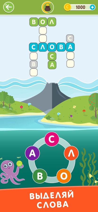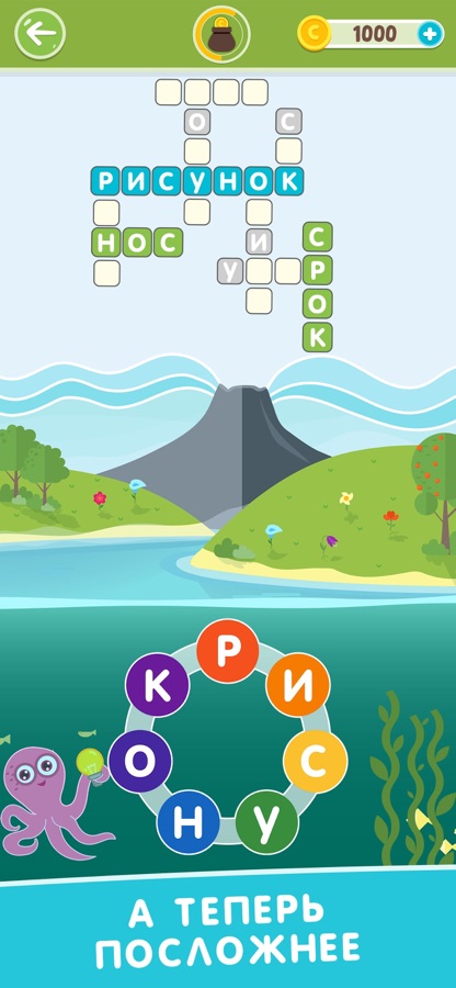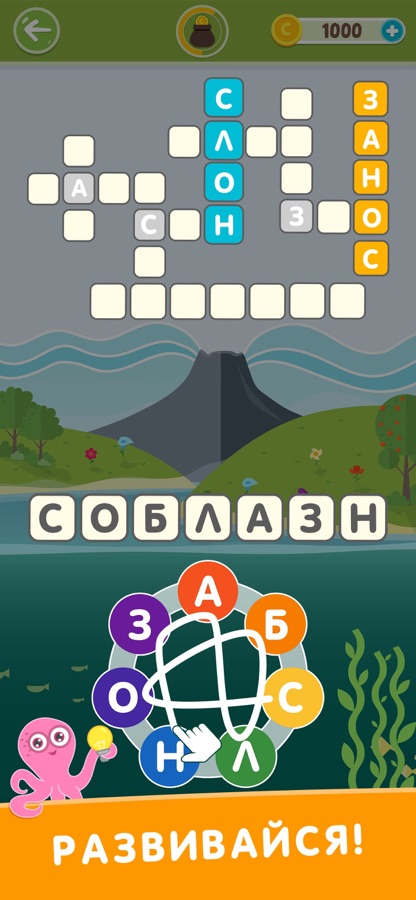 Собирай из набора букв слова и заполняй кроссворды.