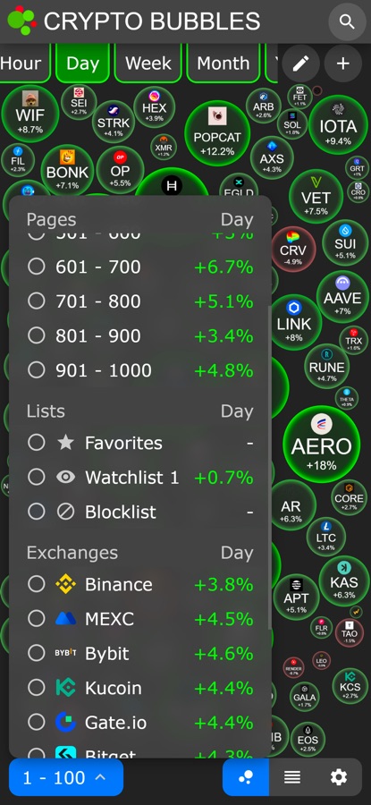 — View every bubble directly on CoinMarketCap, CoinGecko, TradingView, Binance, MEXC, Bybit, Kucoin, GateIO, Bitget, Bitmart, BingX, Coinbase, Kraken and Crypto.com with a single click