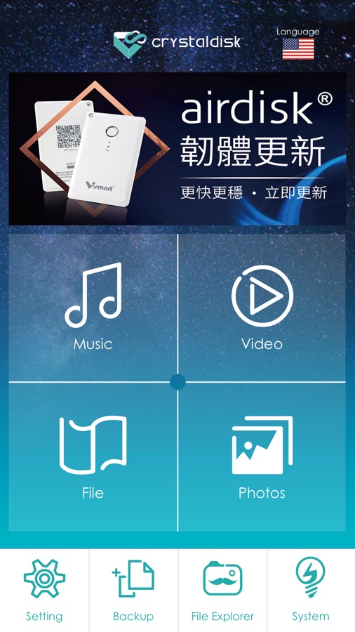 Crystal Disk is the software designed for V-smart Airdisk wireless portable storage devices.