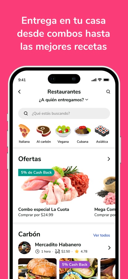 ● Cuballama Mercado: Compra alimentos, productos esenciales y más, entregados directamente en los hogares de tus familiares en Cuba.