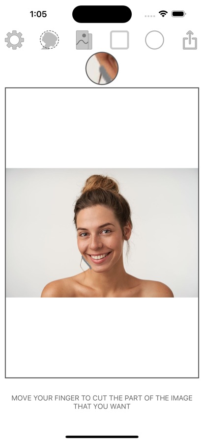 — Нажмите кнопку «Силуэт», чтобы выбрать фотографию из галереи или сфотографировать с камерой, а затем нарисуйте пальцем часть фотографии, которую вы хотите обрезать.