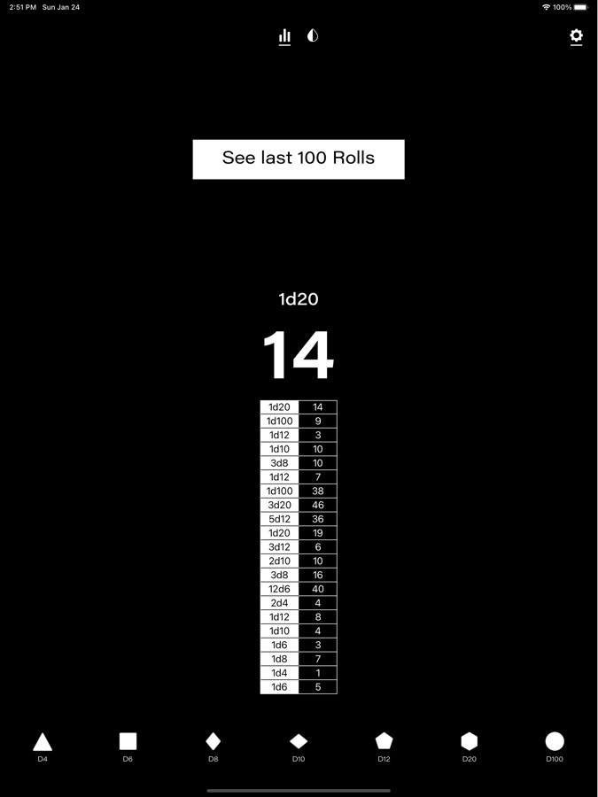 • Бросайте 4, 6, 8, 10, 12, 20 или 100-гранный кубик.