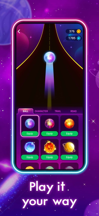 Ведите мяч так, чтобы он соответствовал другим шарам того же цвета, внимательно слушая музыку. Собирайте монеты и подарочные коробки, чтобы открыть новые сокровища. Тренируйте координацию глаз, когда мяч внезапно меняет цвет на танцующей дороге.
