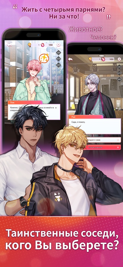 2. интерактивные чат-истории с четырьмя разными любовными интересами!