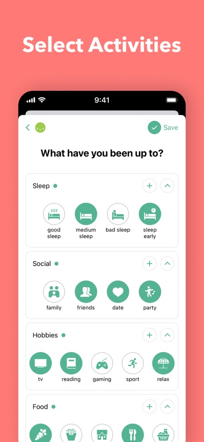 Универсальное приложение Daylio можно превратить в средство для отслеживания чего угодно. Ваш помощник по спортивным целям. Ваш тренер по ментальному здоровью. Ваш дневник благодарностей. Средство регистрации настроения. Ваш фотожурнал питания. Занимайтесь, медитируйте, питайтесь и будьте благодарны. Позаботьтесь о своем ментальном, эмоциональном и физическом здоровье. Правильный уход за собой — это ключ к улучшению настроения и снижению тревожности.