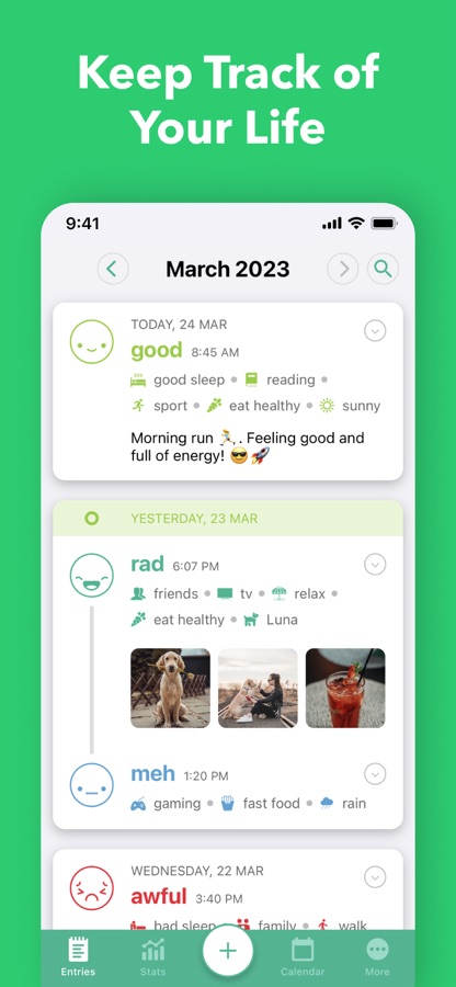 Настало время для роста вашего благополучия, самосовершенствования и заботы о себе. Используйте Daylio в качестве ежедневника с чек-листом или средства контроля целей. Приложение базируется на трех принципах: