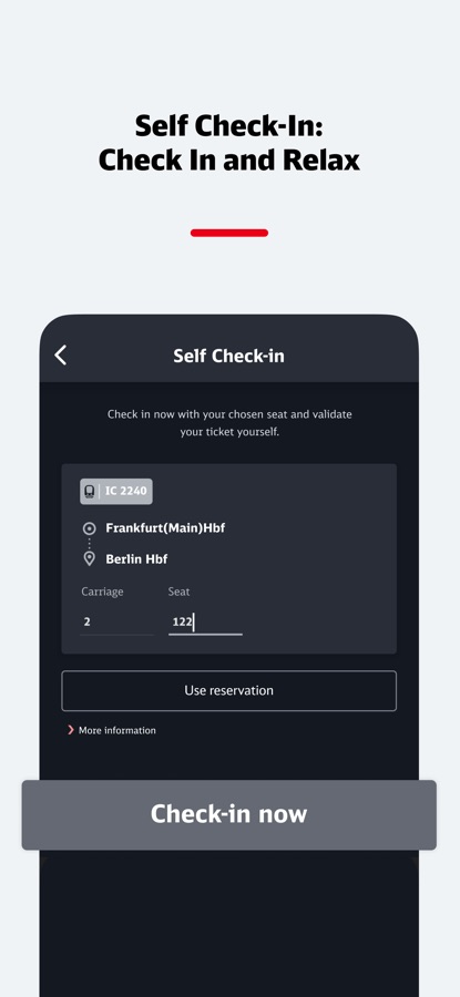 Find more information about the functions of DB Navigator on our website at bahn.de/app.