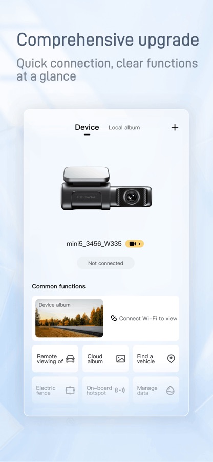 1.Support WiFi connection to DDPai-powered car camera
