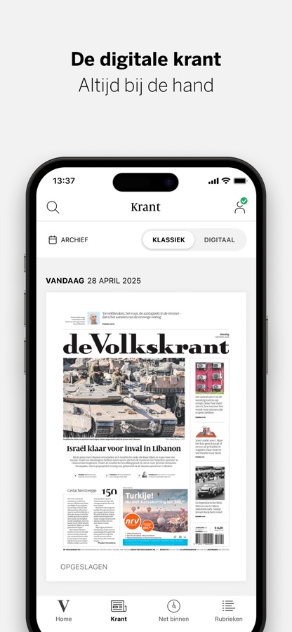 Klassieke krant weergave: lees de digitale versie van de papieren krant op uw iPhone.