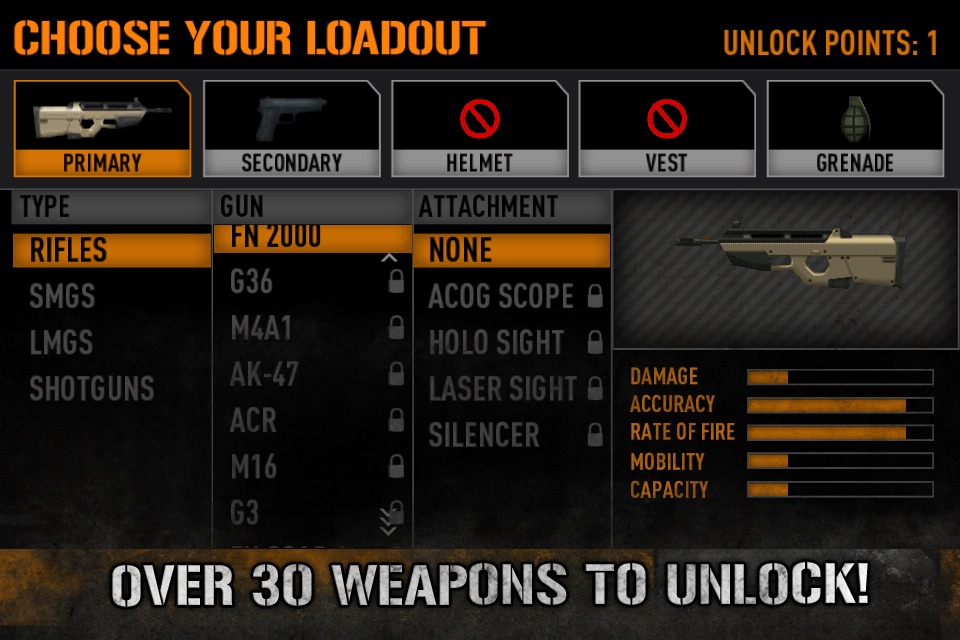 — Over 30 weapons including assault rifles, sub machine guns, grenades and more.