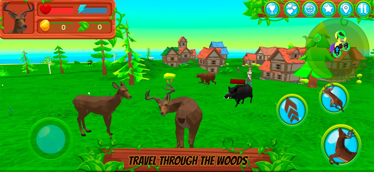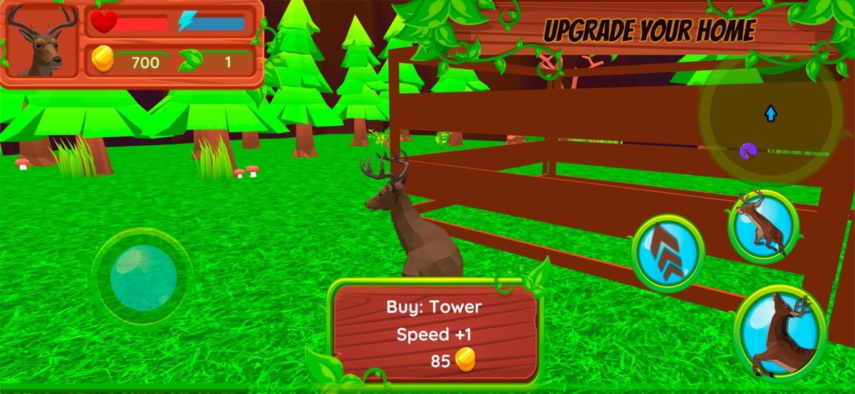 В лесу живет очень много опасных зверей, готовых напасть на вашего оленя. Поэтому оленю нужно научиться выживать в лесу и помогать своим друзьям. В этой игре вам предстоит создать семью, завести детей и обустроить свое жилище.