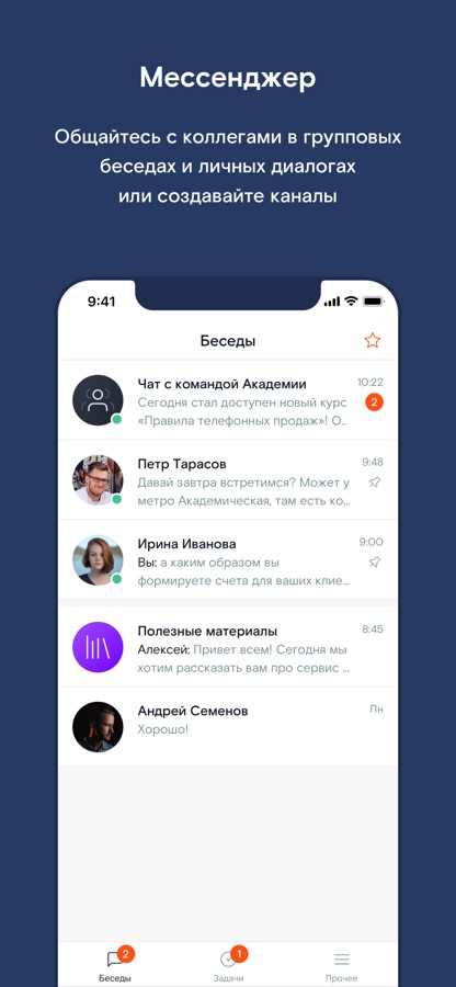 Подключите Мессенджер, если хотите перенести рабочие чаты в отдельное приложение, ставить задачи коллегам и структурировать переписки.