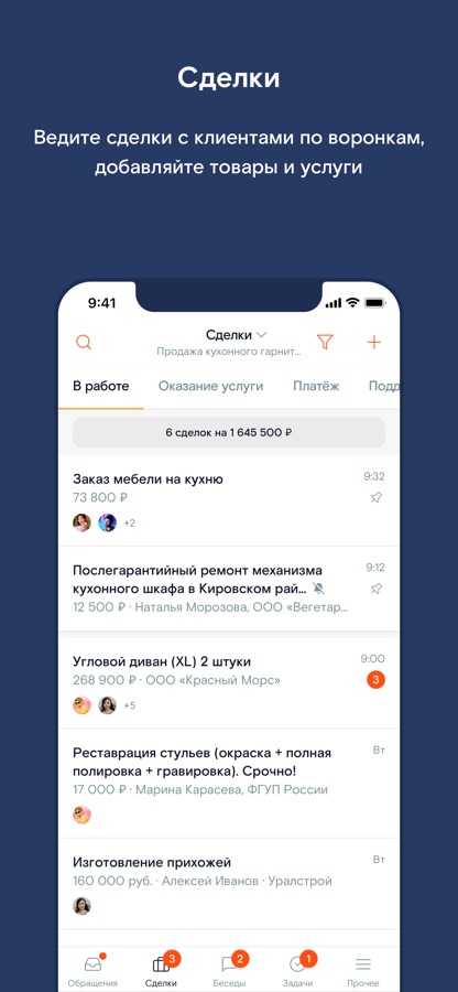 Сделки, клиенты, задачи и общение с командой теперь в одном приложении, настройте его под себя: