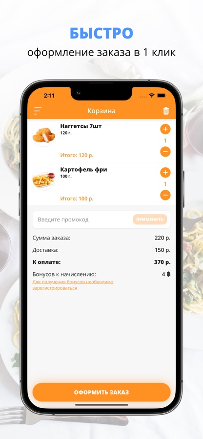 Заказывая через приложение, вы будете накапливать бонусные баллы, которыми сможете оплатить часть покупки.