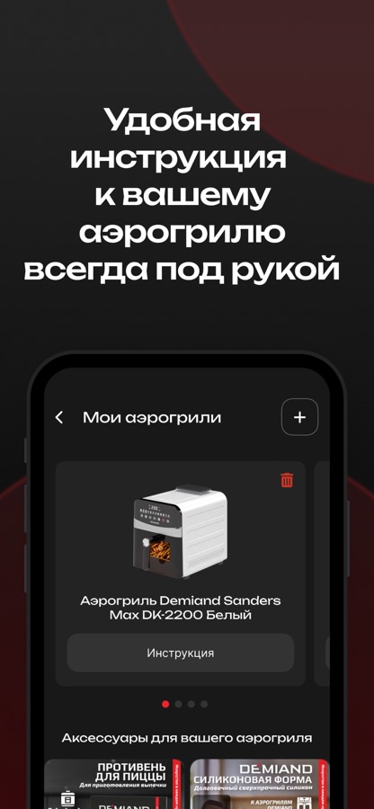 Приложение DEMIAND — ваш личный помощник и сообщество для готовки в аэрогриле. Всё в одном приложении.