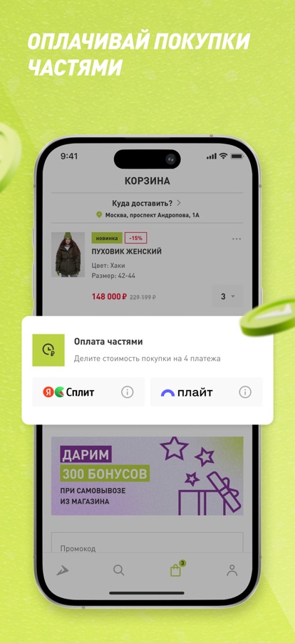 Удобная оплата. Покупка оплачивается при получении, онлайн или частями.