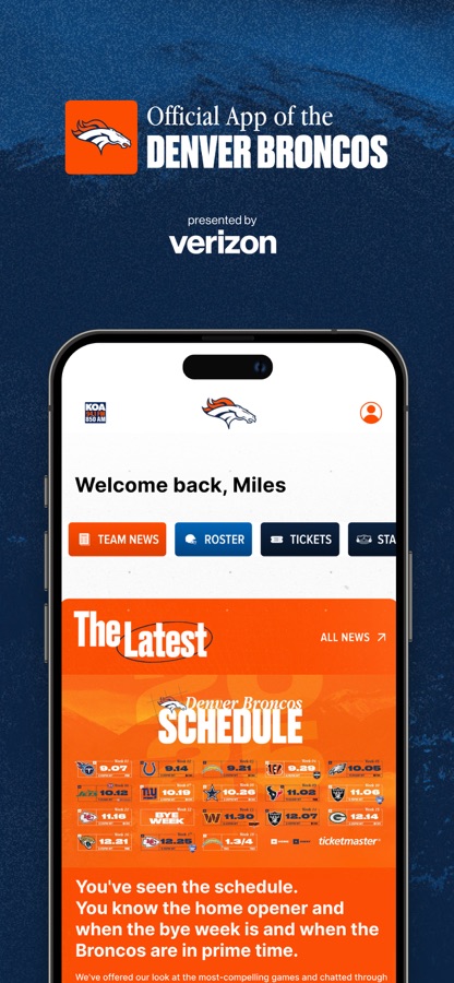Maximize your Broncos fandom by downloading the official mobile app of the Denver Broncos. Stay updated with breaking news, real-time stats, on-demand videos, and more on your phone or tablet, anytime and anywhere.