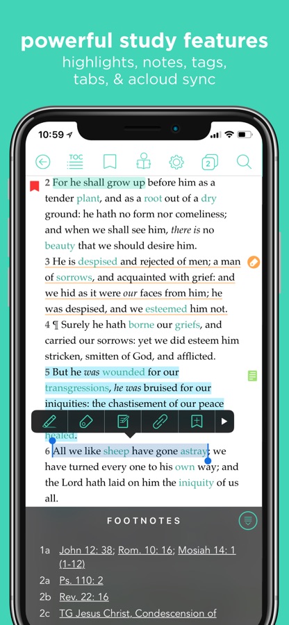 — Tap scripture references to view linked verses instantly in context.