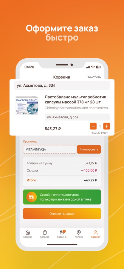 — Онлайн-заказ — бронируйте товары и забирайте их в удобной аптеке.