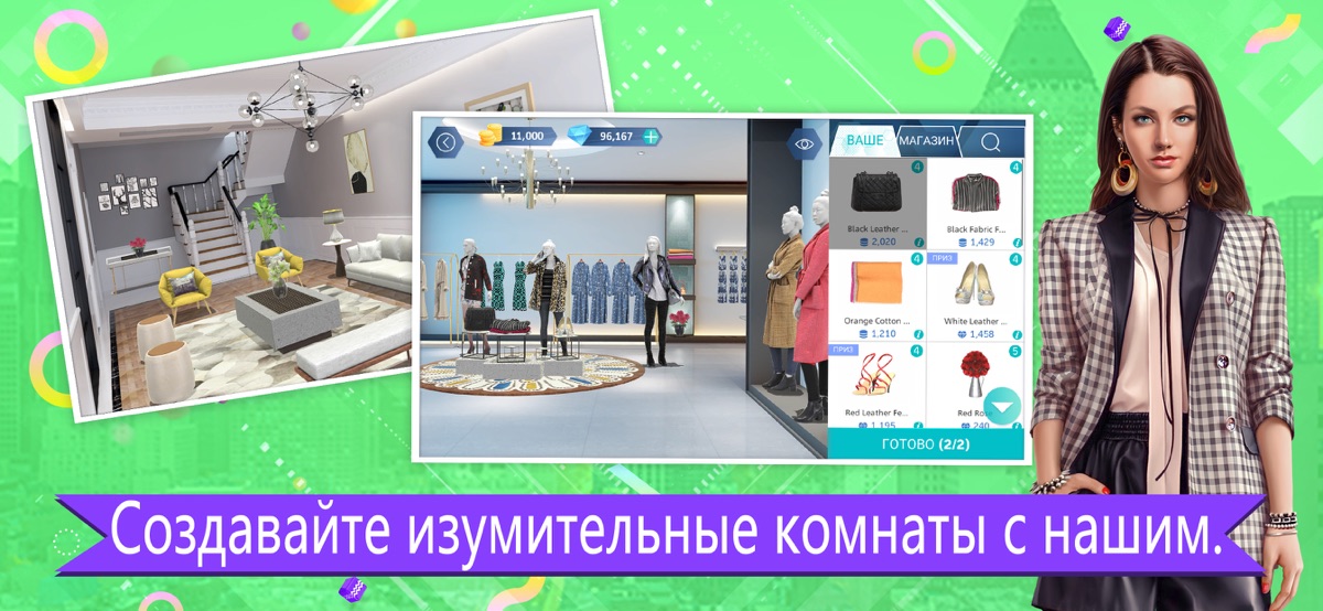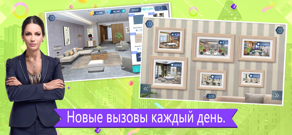 «Разрабатывайте собственные дизайны и оформляйте комнаты в различных стилях прямо в своём телефоне. Легко и с удовольствием! Новые вызовы будут ждать вас каждый день. Практикуйтесь и улучшайте свои дизайнерские навыки. Изучайте опыт других игроков и дизайнеров со всего мира, общайтесь с ними.