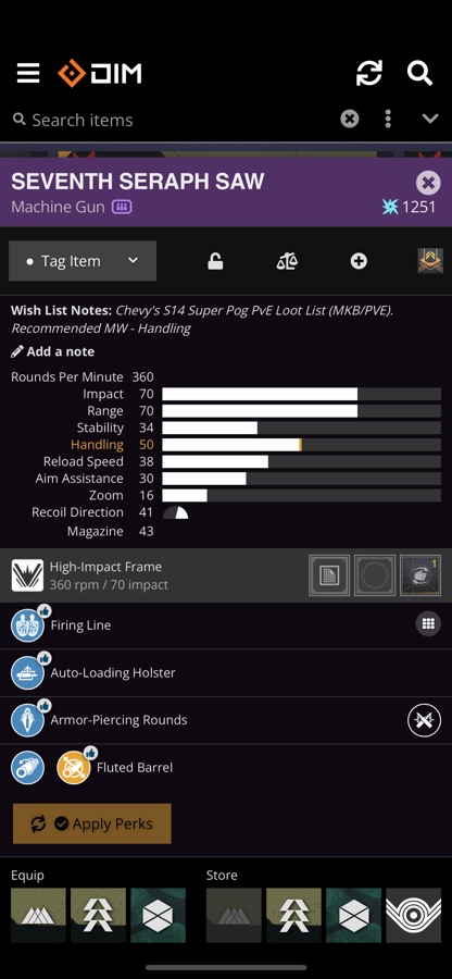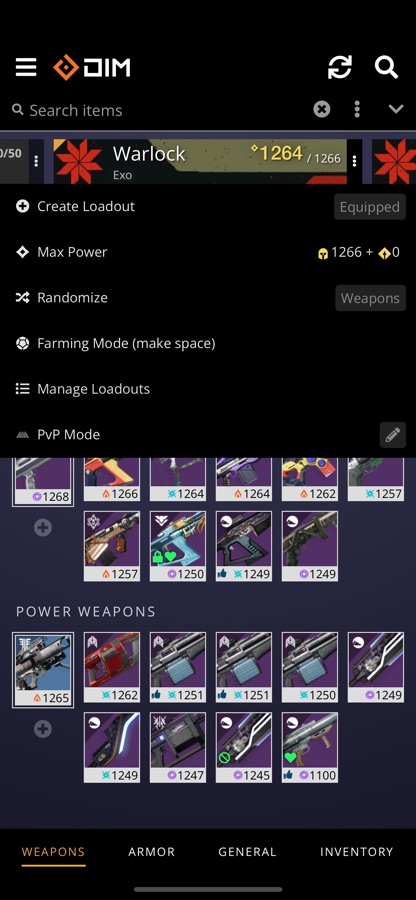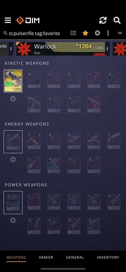 Use the built-in curated item lists to quickly find the best gear that you own.