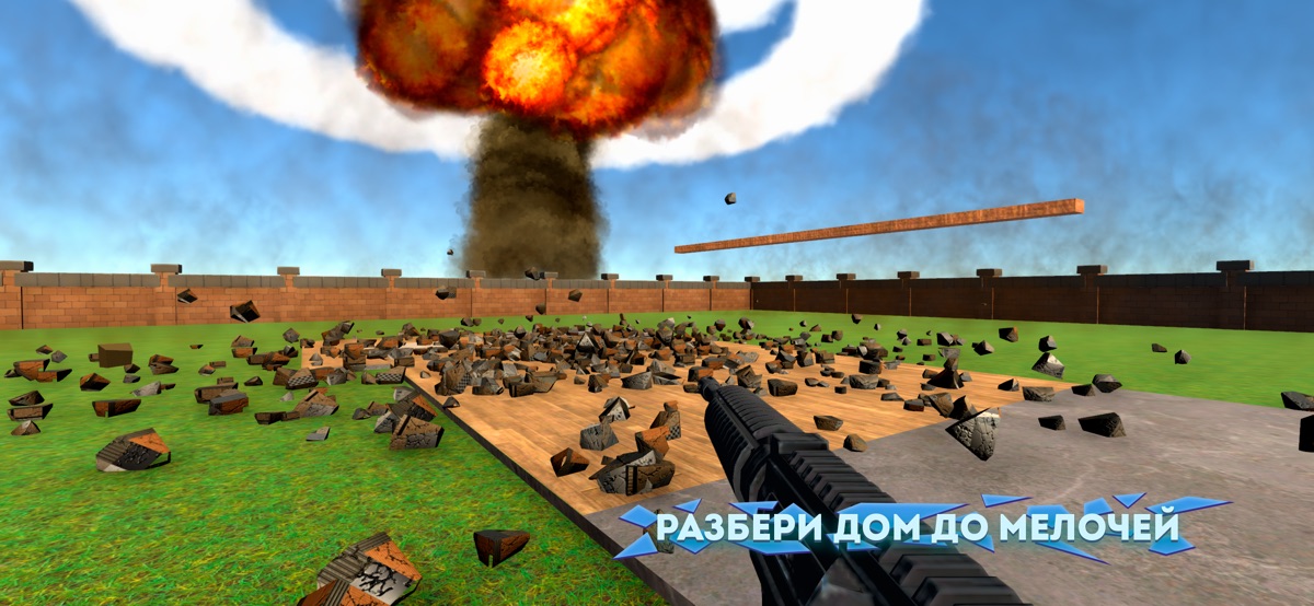 Игра с разрушаемой средой. Уничтожьте домашние интерьеры с помощью оружия и насладитесь эффектами разрушения.