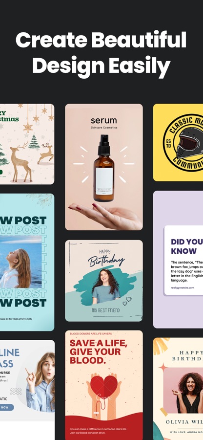 Get inspired with 600+ predefined graphic designs. Create amazing graphic design with one tap.