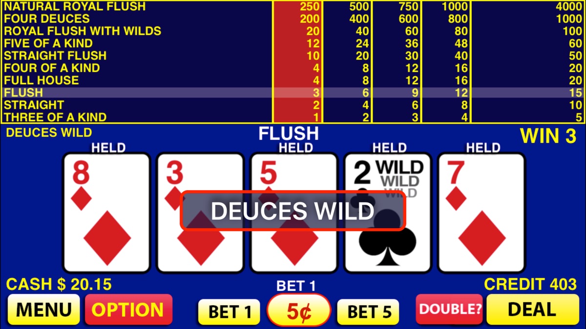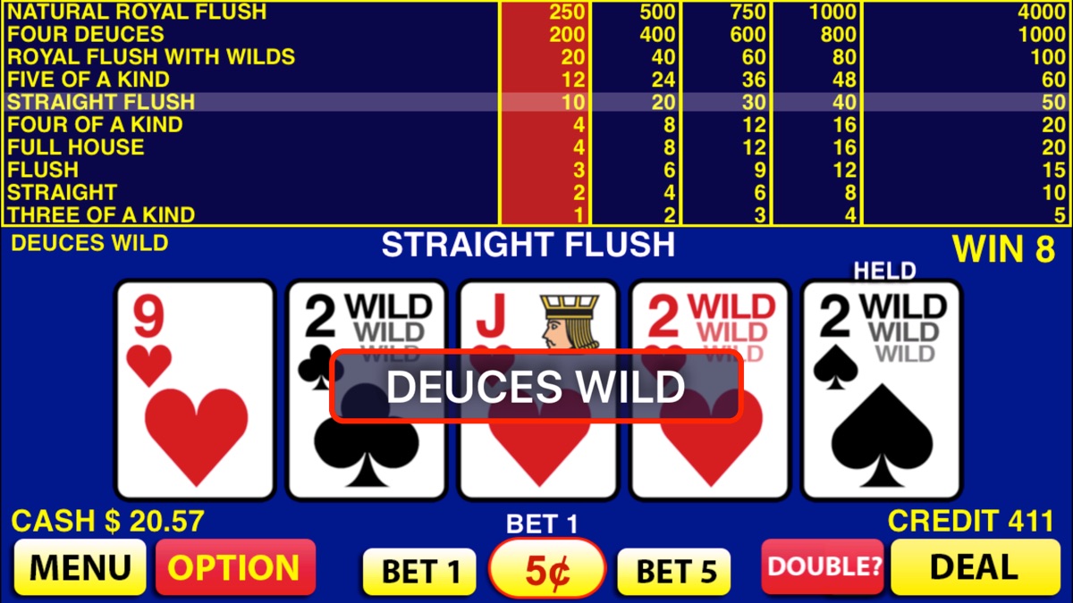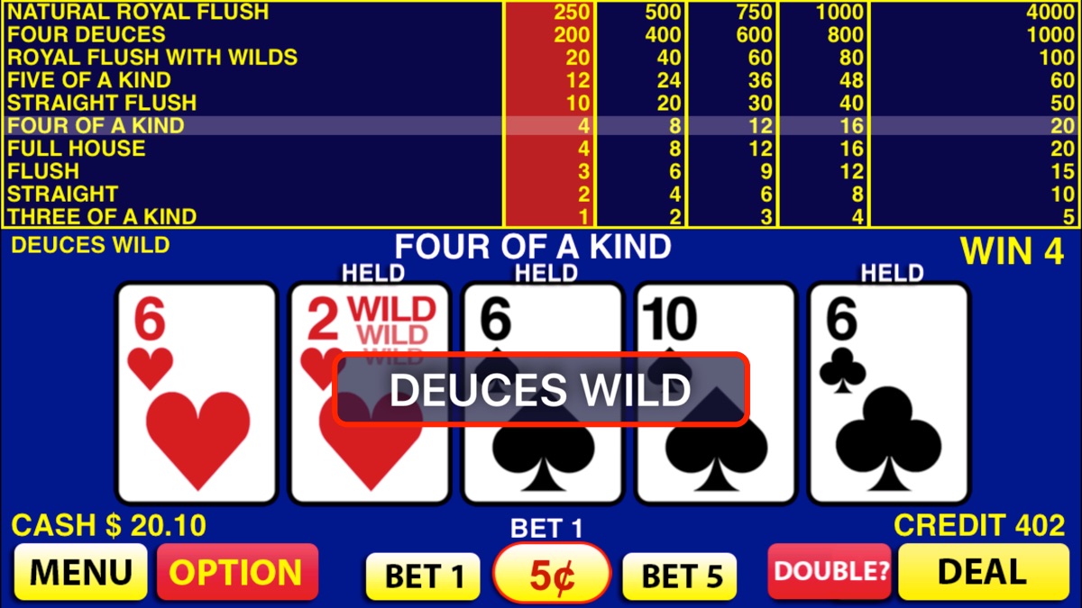 Deuces Wild Video Poker brings a complete video poker experience to your device. With authentic dueces wild poker game, real card shuffling, and real paytables, you will get a Las Vegas video poker feeling –- anywhere, anytime. So get set to play with this top rated video poker on iPad and iPhone!
