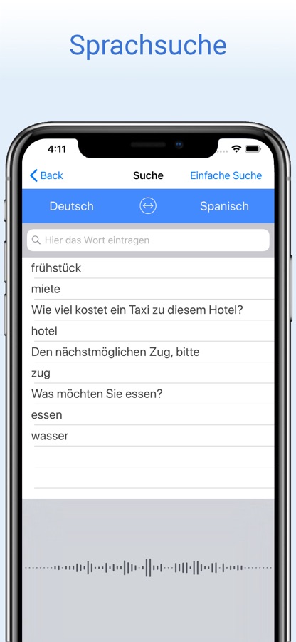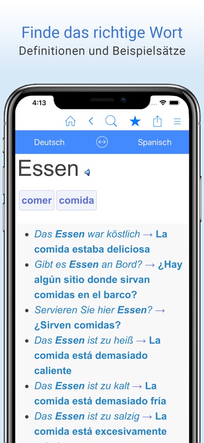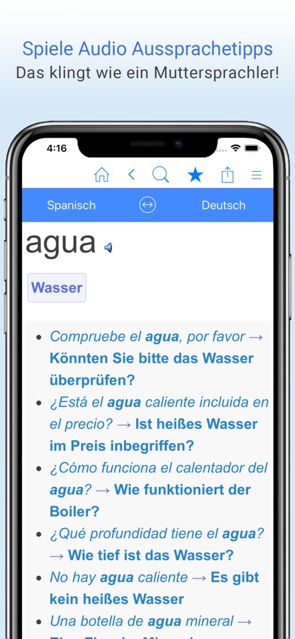 * Wechsele mit nur einem Tap vom Deutsch-Spanisch zum Spanisch-Deutsch Modus.