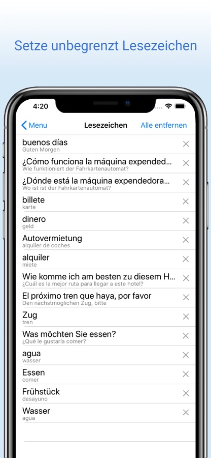 * Setze unbegrenzt Lesezeichen und greife schnell auf alle gespeicherten Wörter zu.