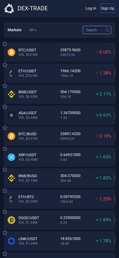 Dex-Trade is a comprehensive financial platform for the majority of leading cryptocurrencies, such as Bitcoin, Ethereum, Litecoin and etc.
